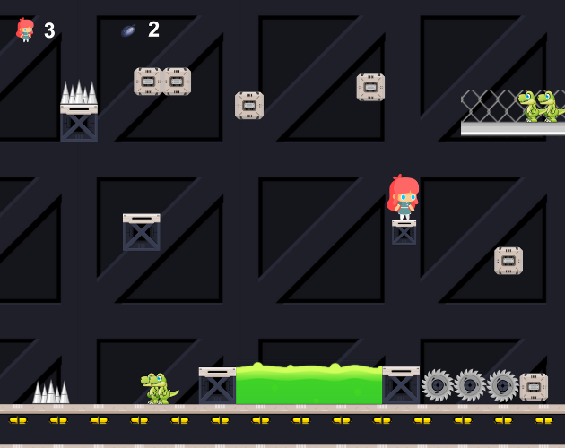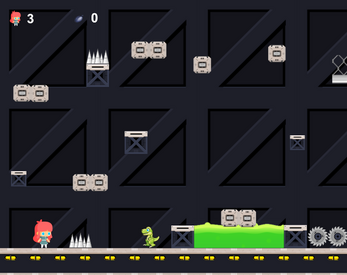 A garotinha possui 3 vidas, a cada toque no Dino ela perderá uma vida. Colete 4 sementes e passe para a próxima fase (através da porta).